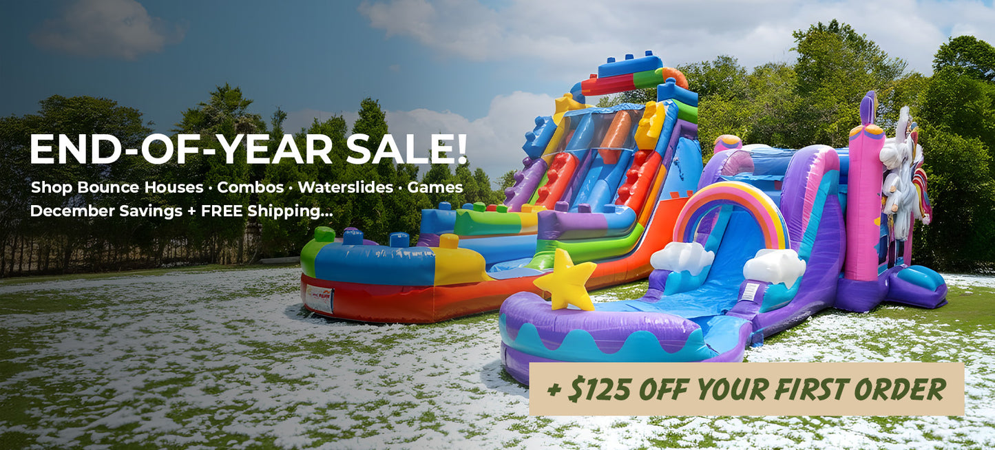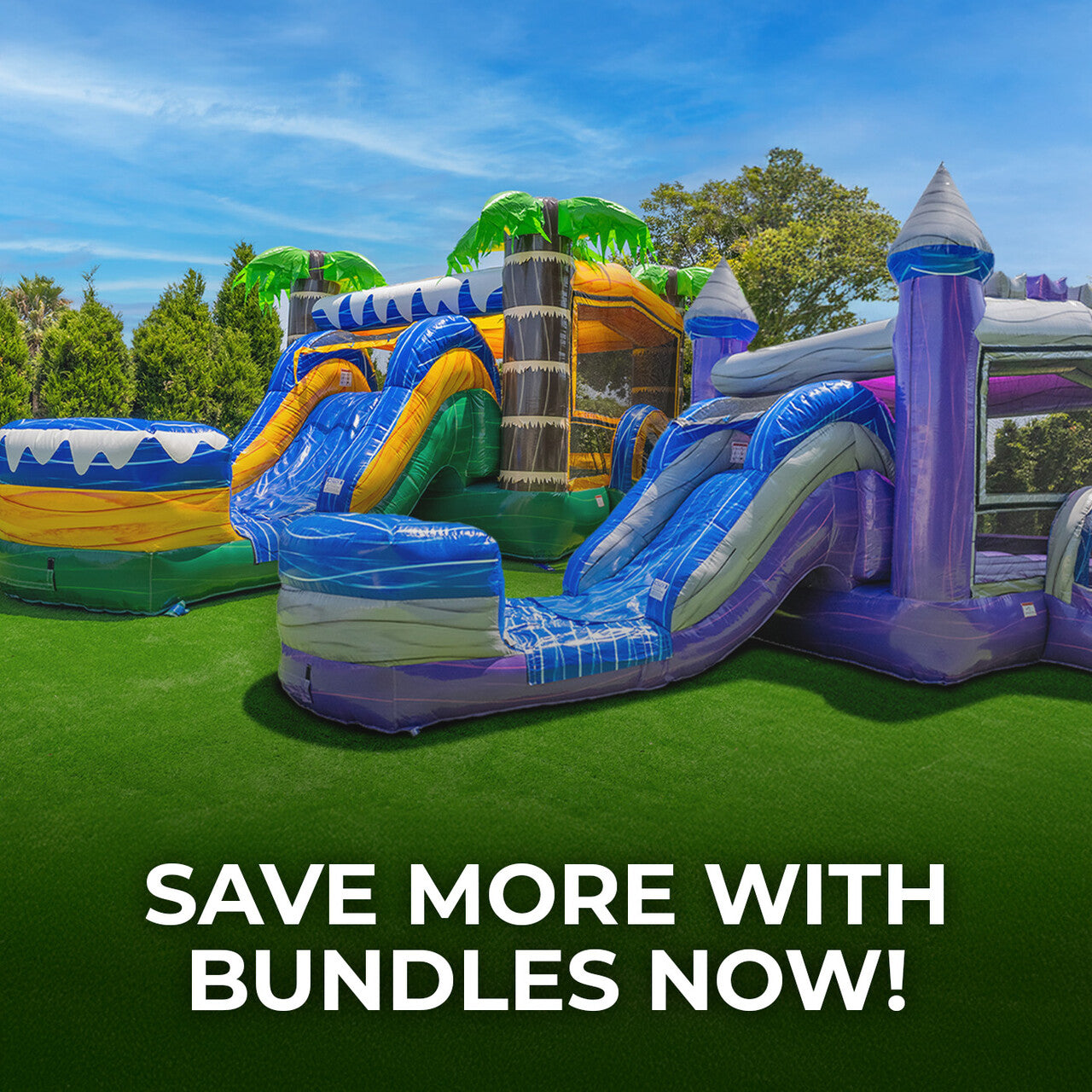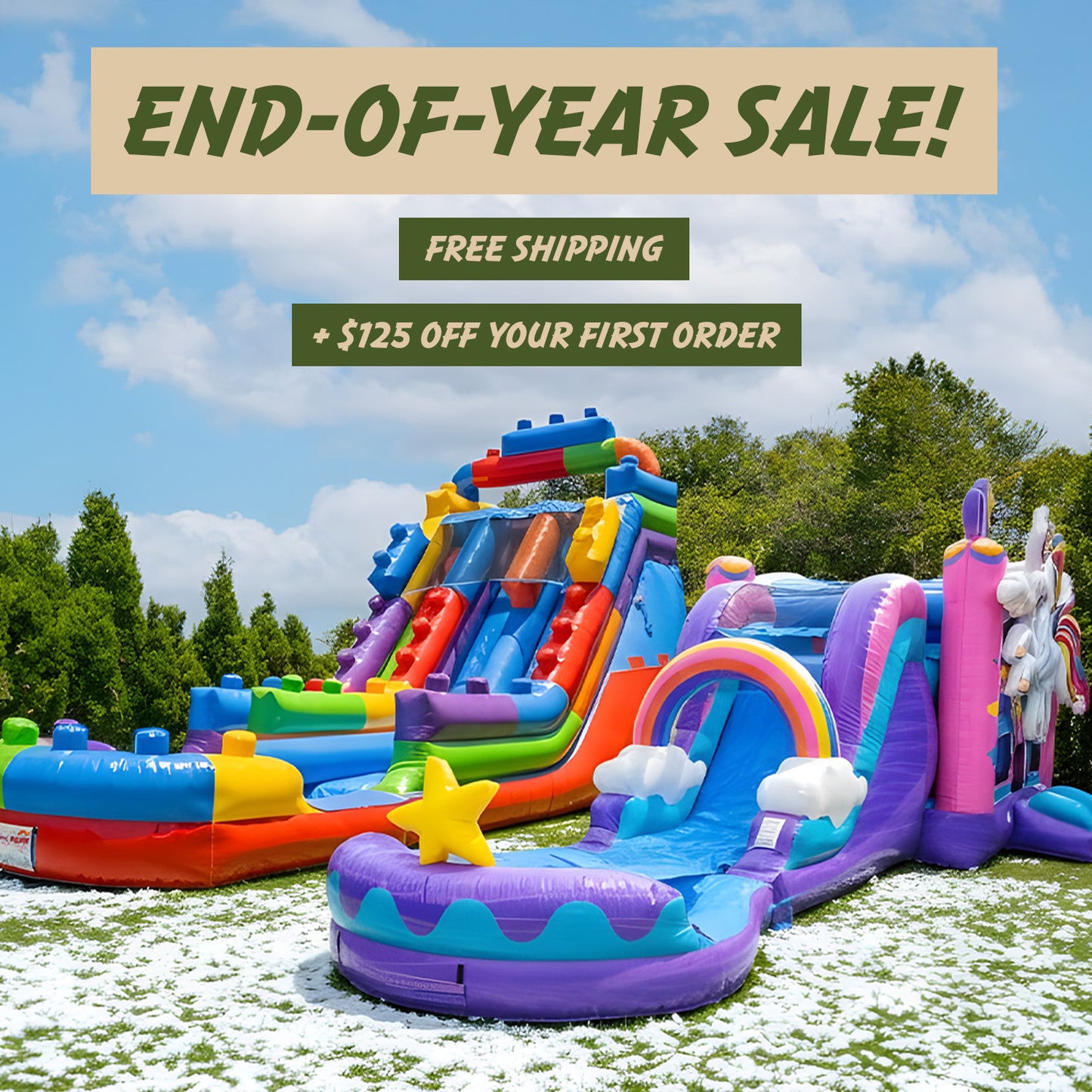 We provide one of the largest selections of high-quality inflatables in the United States, specializing in both standard and custom designs. Our product range includes inflatable bounce houses, commercial bounce houses, inflatable water slides, combo units, and eye-catching commercial-grade units tailored for both private events and rental businesses.